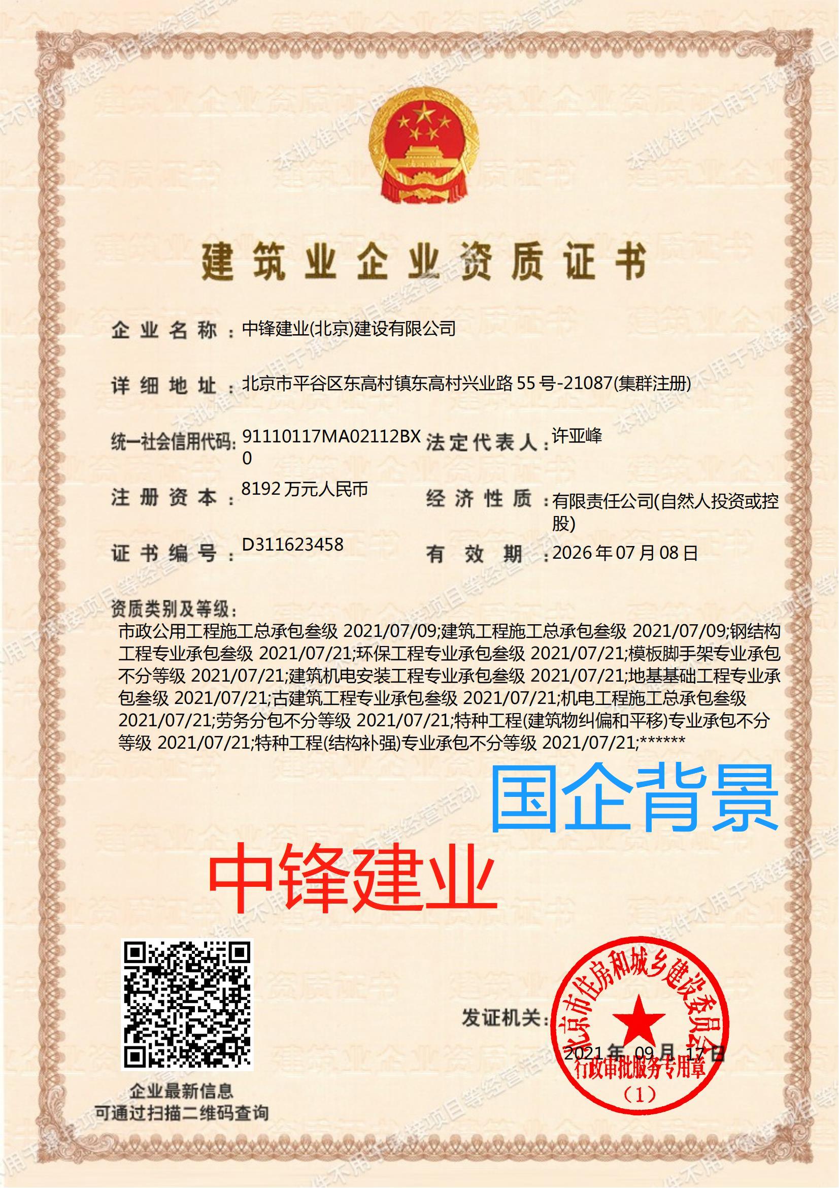 中鋒建業(yè)(北京)建設(shè)有限公司歡迎您工程資質(zhì)加盟分公司 中鋒建業(yè)(北京)建設(shè)有限公司備案信息 企查查中鋒建業(yè)(北京)建設(shè)有限公司信息查詢 住建部中鋒建業(yè)(北京)建設(shè)有限公司資質(zhì)查詢24小時(shí)免費(fèi)咨詢