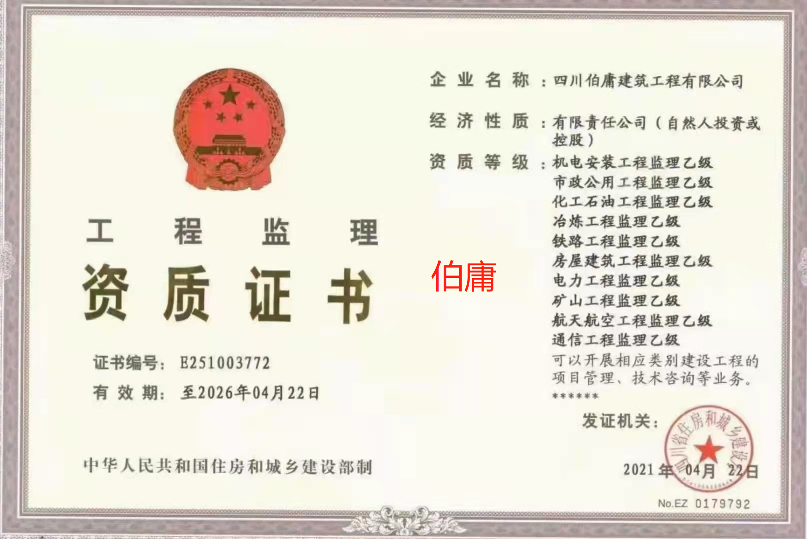 四川伯庸建筑工程有限公司資質范圍及等級: