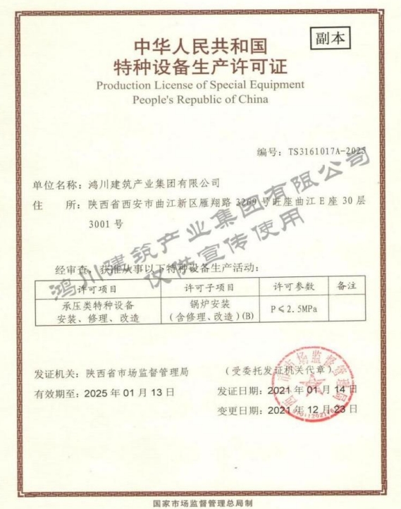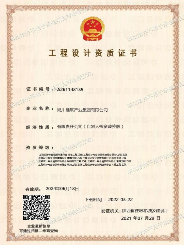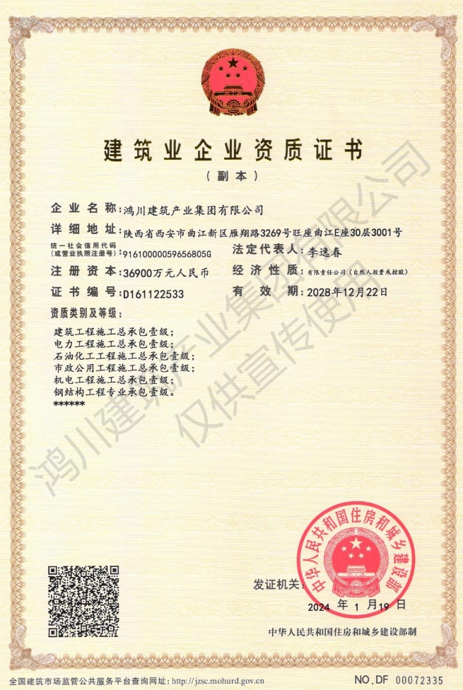 鴻川建筑產業集團有限公司資質范圍及等級: